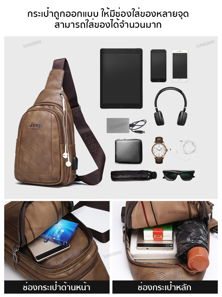 หมวดหมู่ กระเป๋าสะพายข้าง กระเป๋าหนังผู้ชาย JEEP